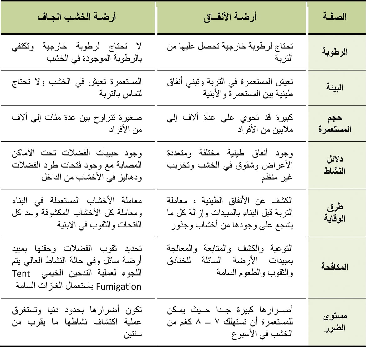 اهم الفروقات بين أرضة الأنفاق وأرضة الخشب الجاف