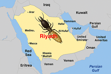 Termites are distributed across all regions of Saudi Arabia without exception, and they attack a wide variety of materials in buildings as well as agricultural crops.